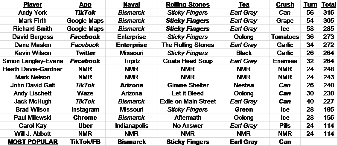 natural inclination was to go for BISMARCK or SCHARNHORST, but presumably an