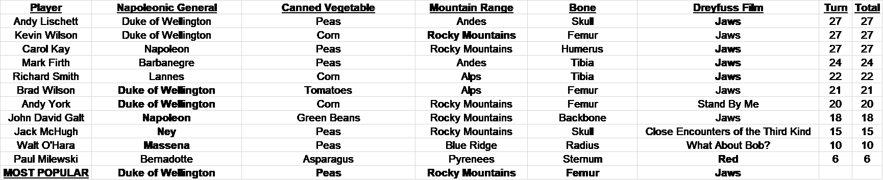 Joker category shown in BOLD. Most popular answer shown in the bottom row.