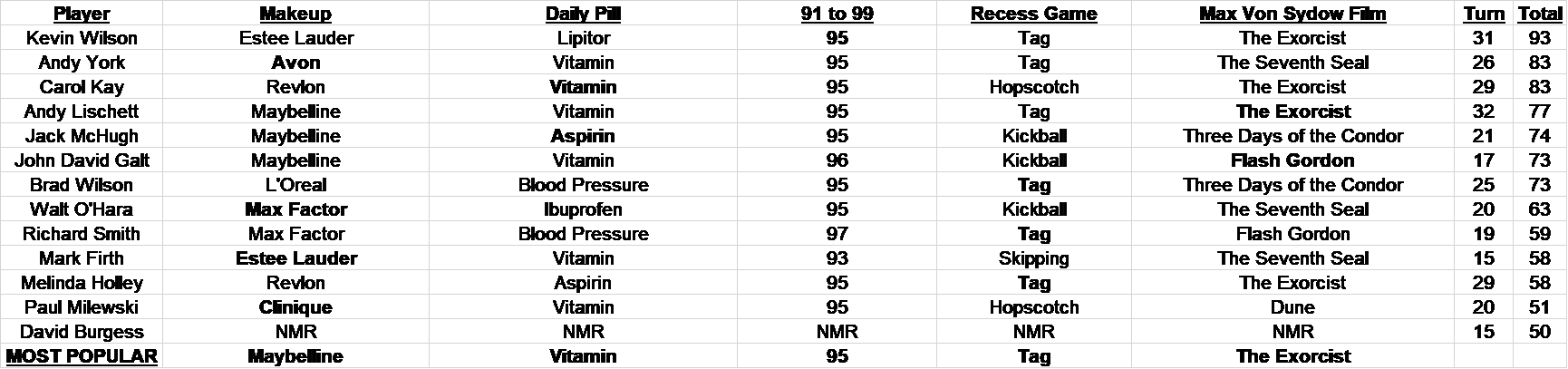 Joker category shown in BOLD. Most popular answer shown in the bottom row.