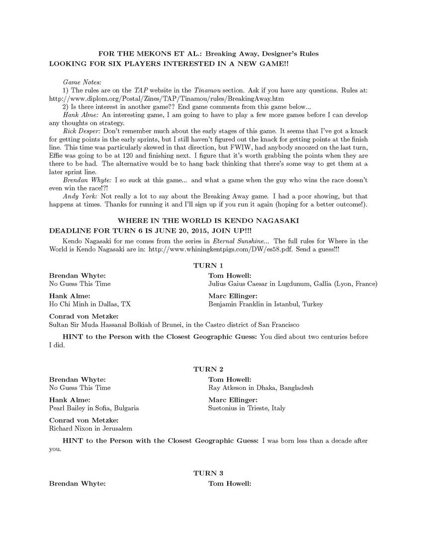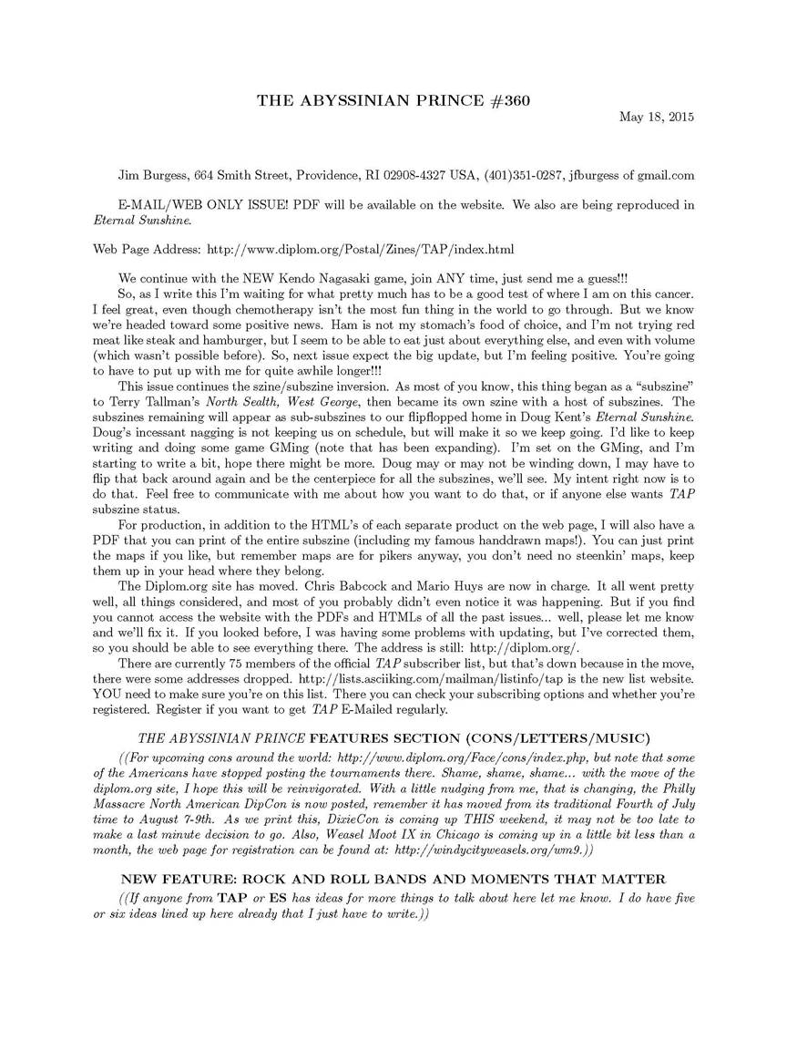 any subzine news or errata.