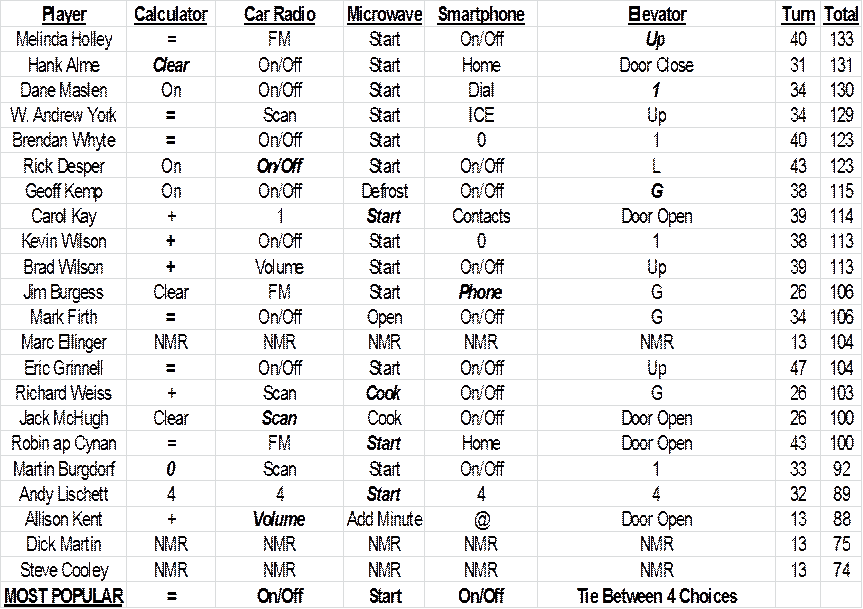 Poor Allison scores the lowly 13, while Eric Grinnell
