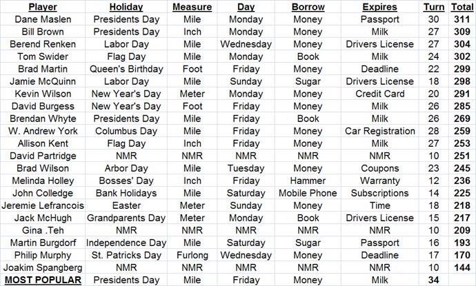 previous round. If a person misses a round, they'll receive the minimum score