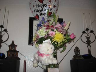 surprise her – but always a few days before Valentine’s Day. The photo is of the arrangement I gave her