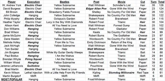 was tempted to try something more gruesome, hanging, the guillotine, burning at