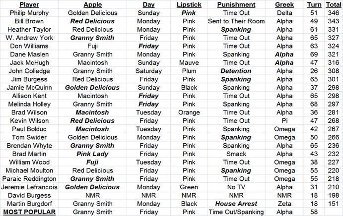 I guess omega and psi for the Bablyon 5 fans might be popular too.” Philip Murphy “Can anybody say TOGA PARTY?”