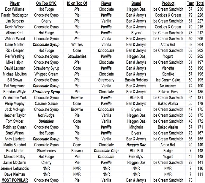AL – Andy Lischett (1), AY – Andy York (3), JB – Jim-Bob Burgess (8 – in the