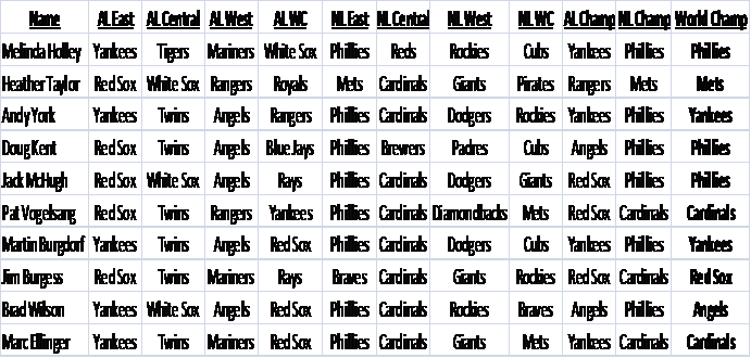 The Eternal Sunshine Baseball Prediction Contest Entries