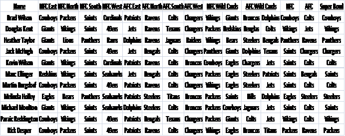 cumulative score from the previous round. If a person misses a round, they'll