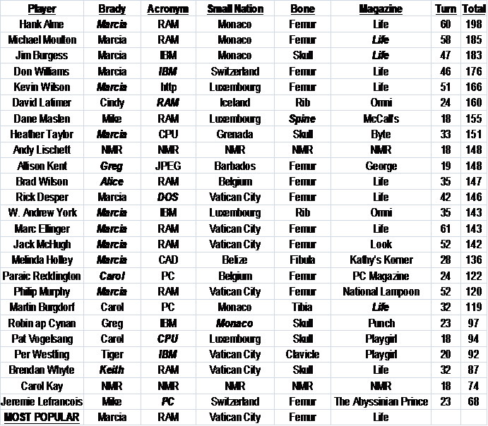 Total Game Points: Rick Desper 3; Jim Burgess 2;