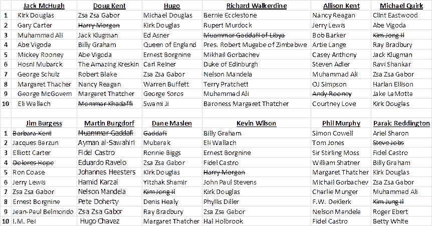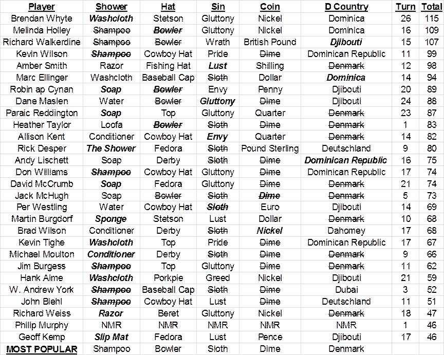 Wilson [KW] 8; Rick Desper [RD] 7 1/3; Kevin Tighe [KT] 6; Paraic Reddington [PR] 5; Andy Lischett