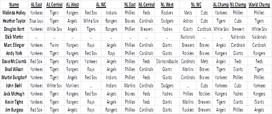 Scores So Far: Rick Desper [RD] – 12; Kevin Wilson [KW] – 11; Andy