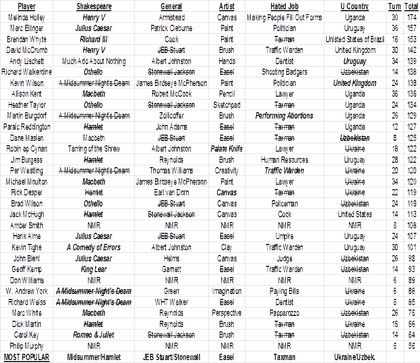 …or, sign up for one of the game openings. A new game of By Popular Demand is
