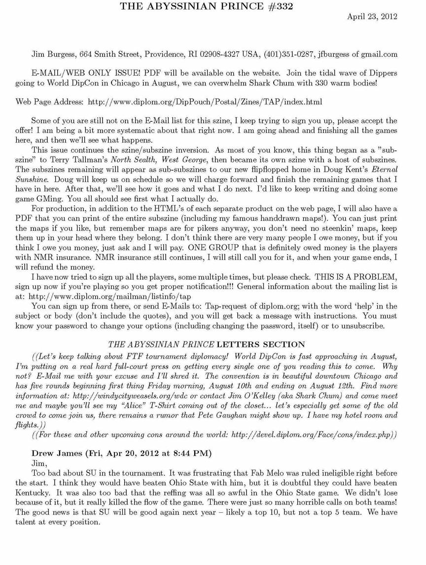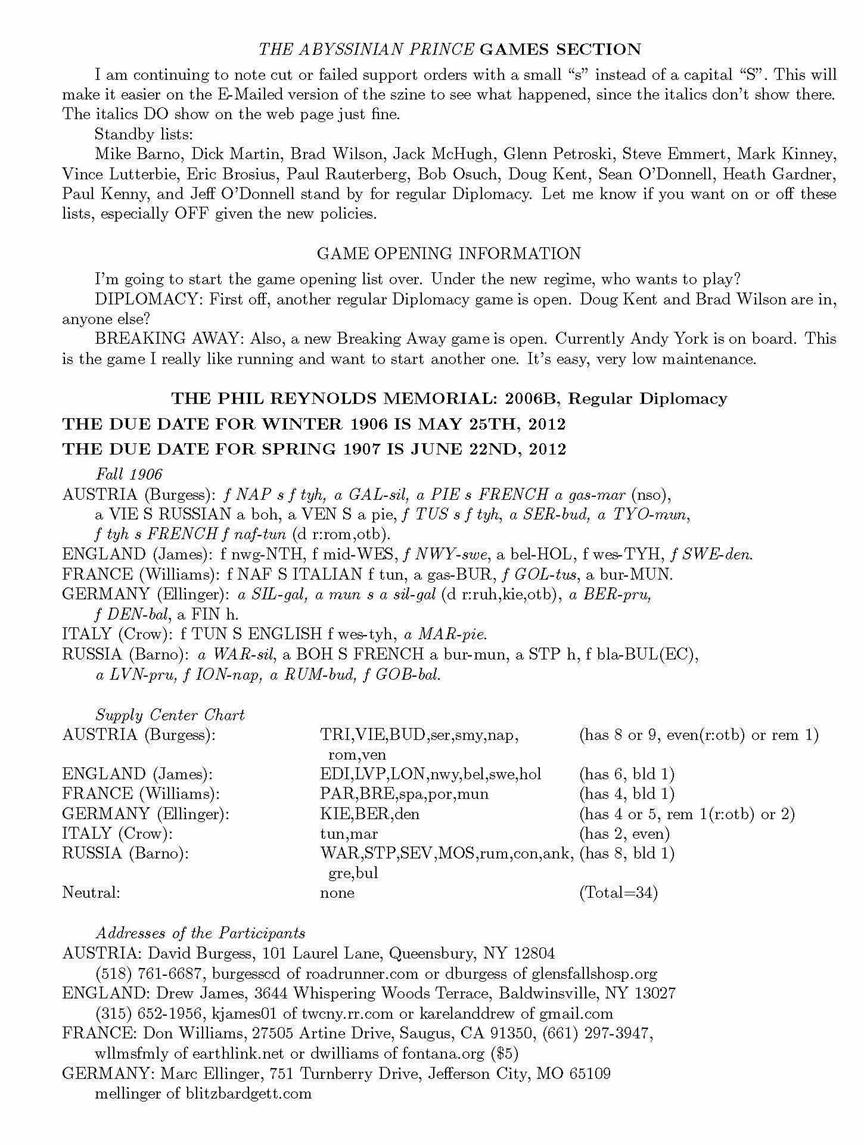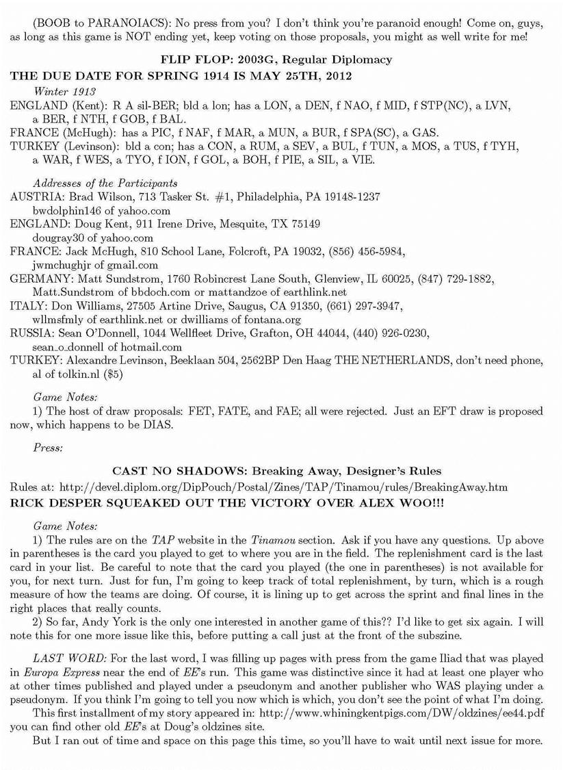 Sunshine, the only Diplomacy zine published by a member of the