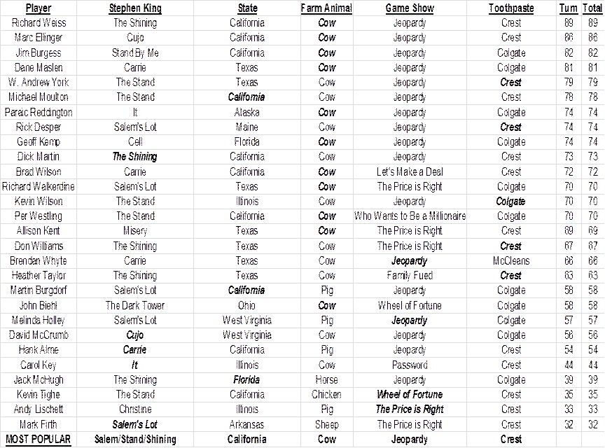 bonus question, asking what the ten movies being quoted have in common. The player with the most correct answers