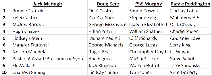 Scores So Far: Rick Desper [RD] – 6; Paraic Reddington [PR] – 3; Kevin
