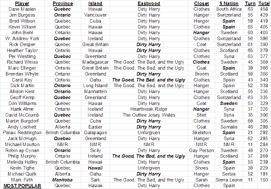 bonus question, asking what the ten movies being quoted have in common. The player with the most correct answers