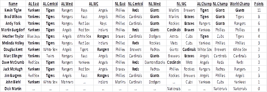 Scores So Far: Rick Desper [RD] – 9; Paraic Reddington [PR] – 3; Kevin