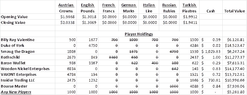 I was also happy to get four Acquire players so quickly. That game starts this issue. Hopefully I won’t screw up the GMing too badly.