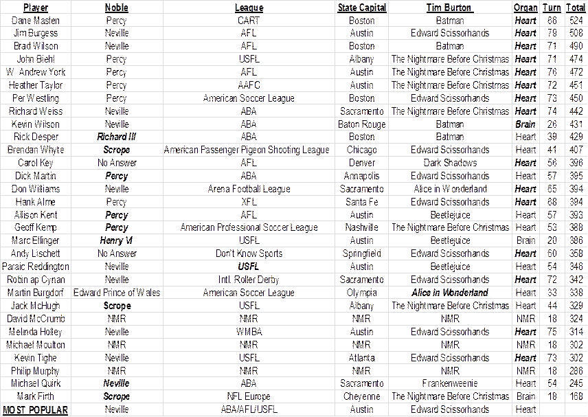 or the ladies lingerie league. The AFL merged. The ABA closed. The WFL is not as well known. I’ll go with ABA.” Per Westling “This