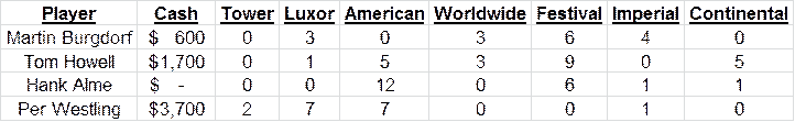 Don Williams [DW] – 4; Kevin Tighe [KT] – 3; Brad