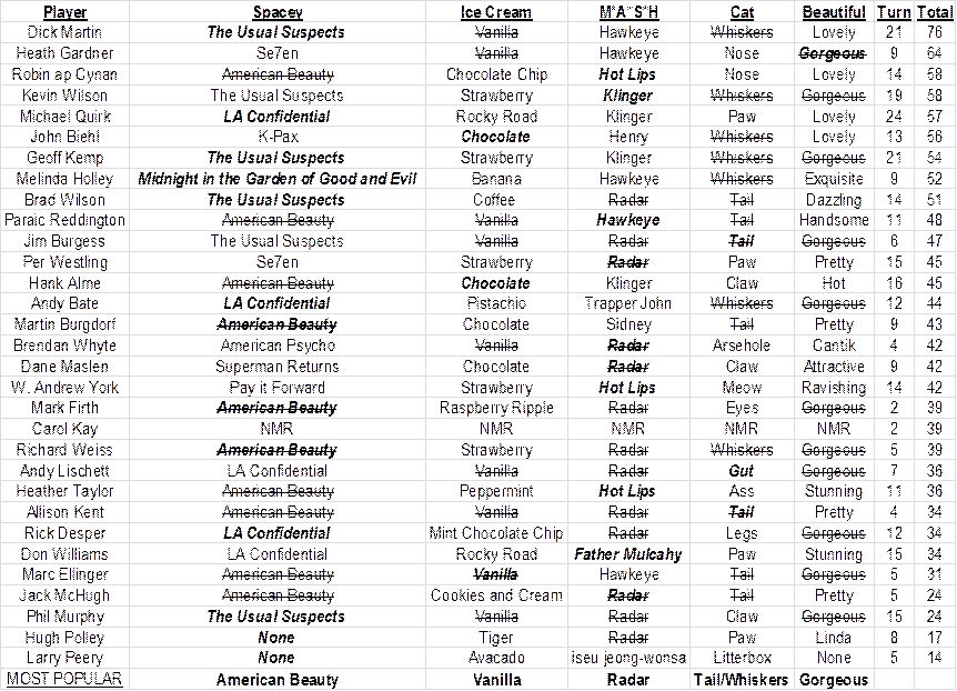 bonus question, asking what the ten movies being quoted have in common. The player with the most correct answers