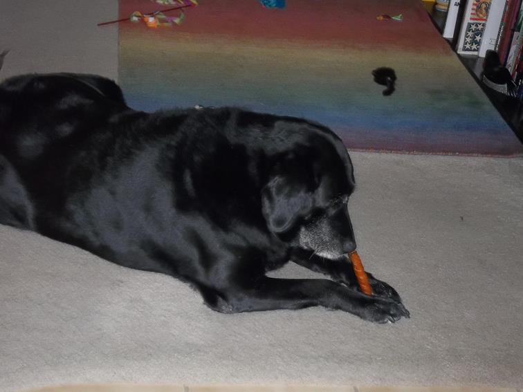 is usually when she’d give Kayza a twisted pork “chewie” to get her to go lie down and back away a little.