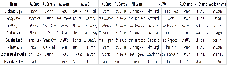 to run the Baseball Prediction contest this year. One less and I would have dropped it.