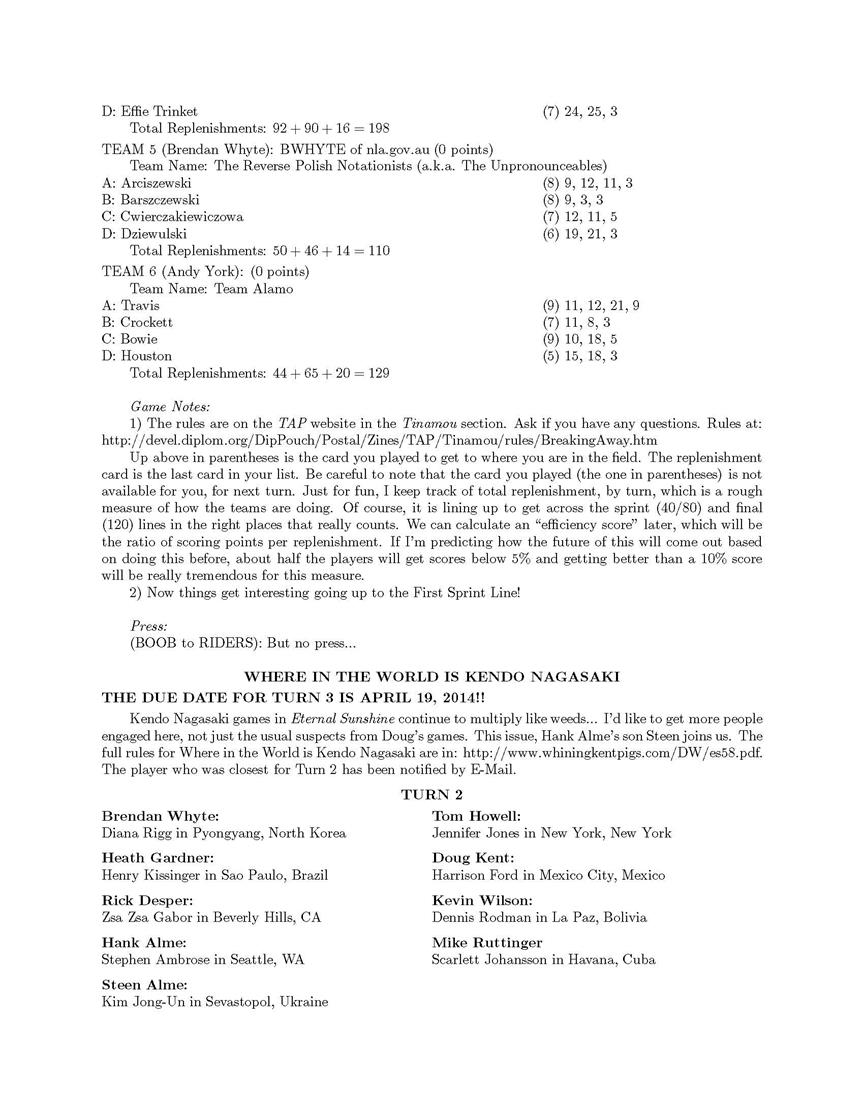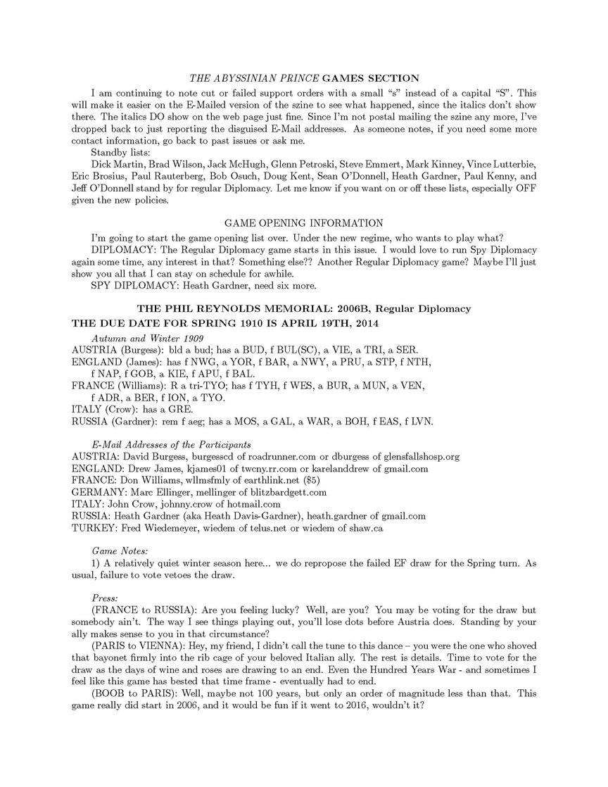 first in a long time – but it isn’t completed yet. Hopefully by next issue. I’ve dropped African Diplomacy from the Game