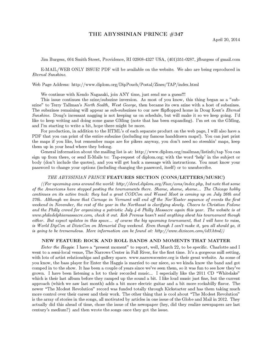 to stay up-to-date on any subzine news or errata. We also have our own Eternal Sunshine Twitter