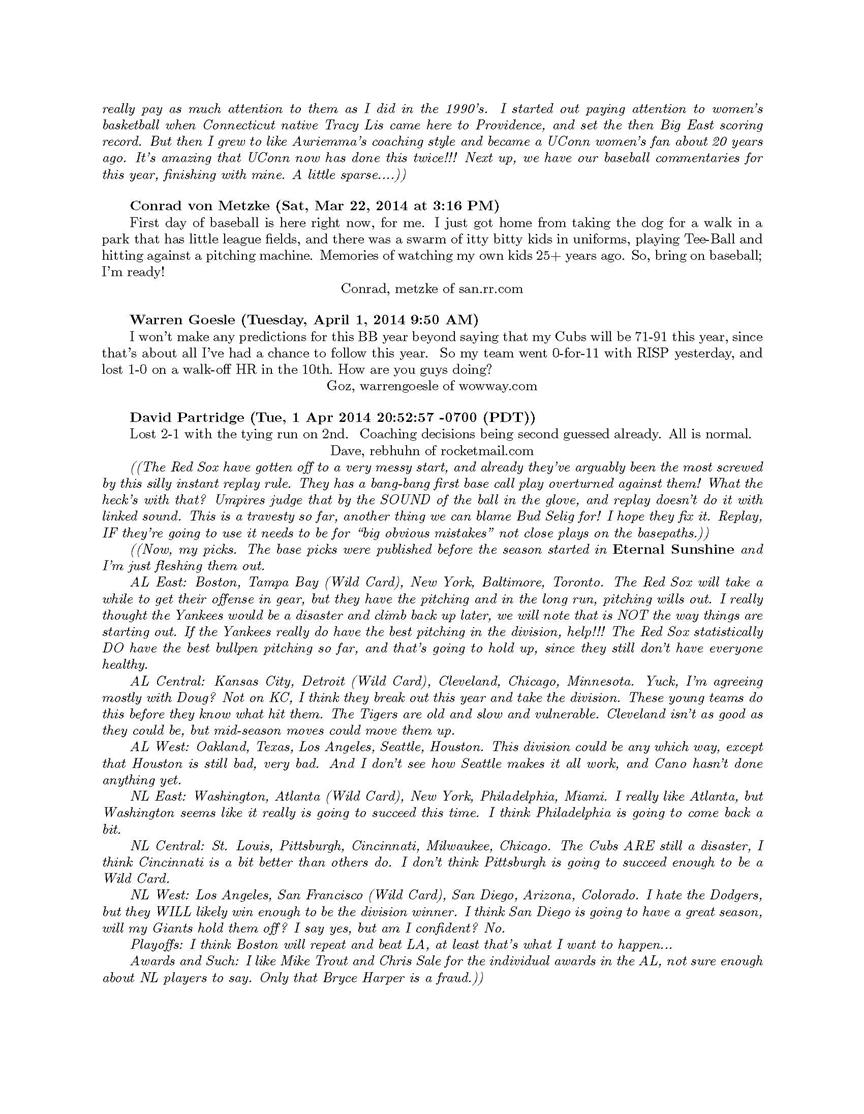 11; Andy Lischett [AL] – 9; Andy York [AY] – 6; Paraic Reddington [PR] – 2.