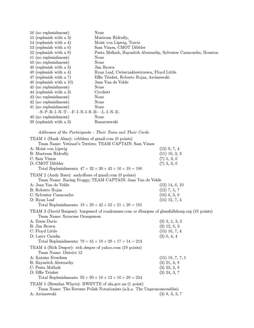 Lischett [AL] – 3; Kevin Wilson [KW] – 3; Jim Burgess [JB] – 2; Jack McHugh