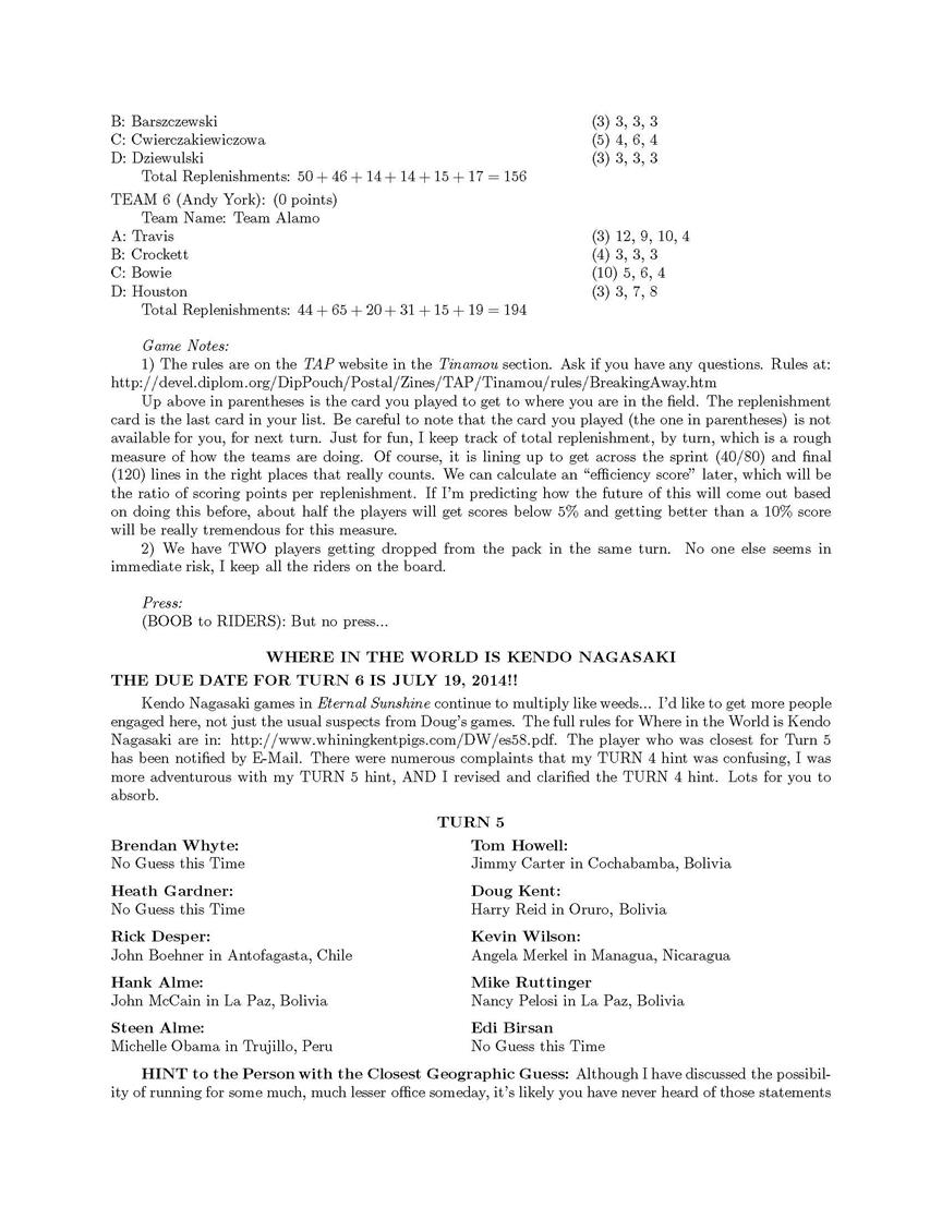 All Diplomacy games, Kendo Nagasaki, By Popular Demand, and