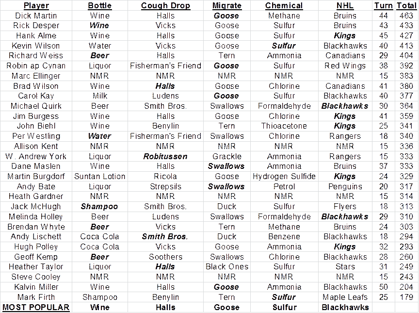 Weiss “Anyone who doesn't name one of the original six, throw them out.” Jim Burgess “Choosing the Stanley Cup